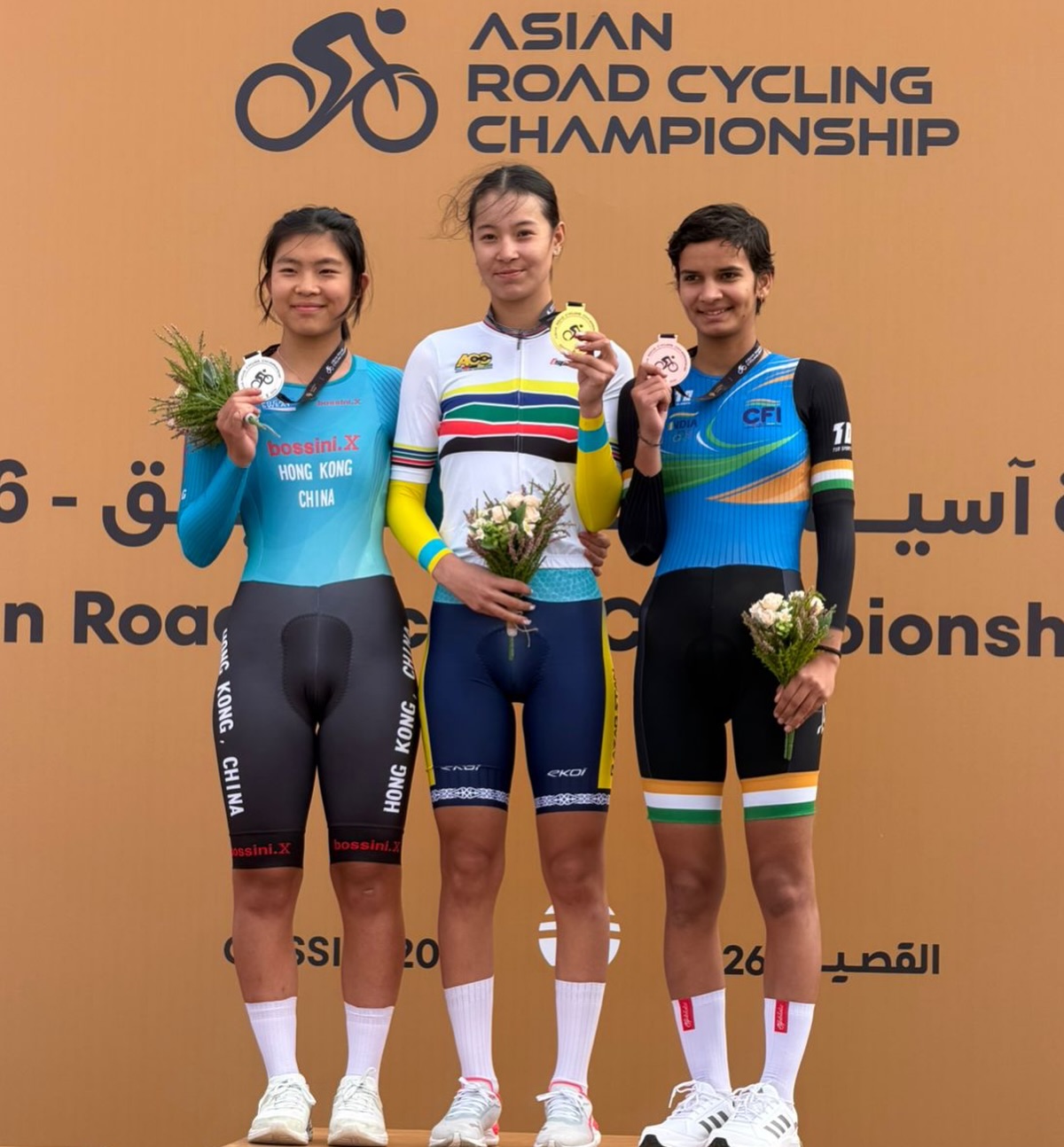 Сразу две награды в один добыли казахстанцы в групповой гонке на чемпионате Азии в Аль-Кассиме, сообщает All Sports Media.