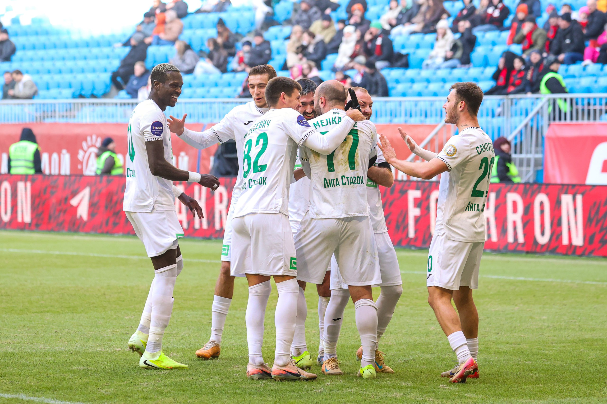 Почти тайм гости играли в меньшинстве после удаления Исмаэля. Голами отметились Меладзе и Дзюба дважды, но первый год был отменен из-за офсайда.