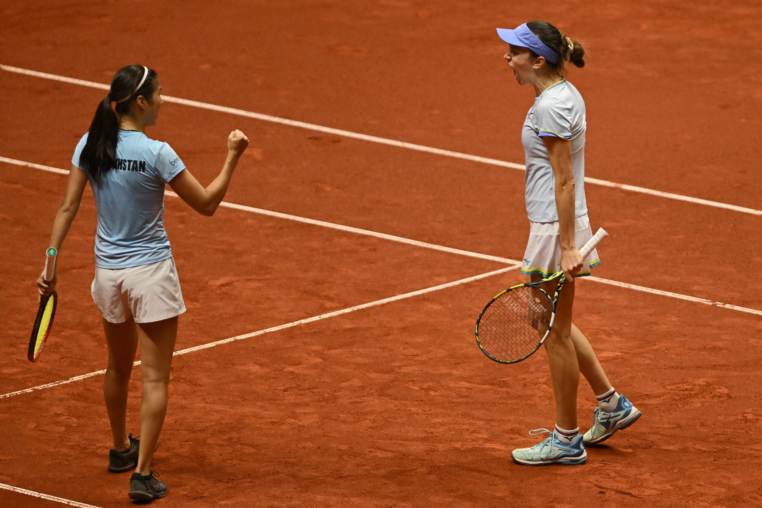 В парной комбинации Анна Данилина и Жибек Куламбаева обыграли Бьянку Андриеску и Кайлу Кросс — 7:5, 6:1. Матч продолжался час и 27 минут. Для победы казахстанкам пять реализованных брейков из пяти. Теперь счет матчевой встречи — 2:1 в пользу Казахстана.